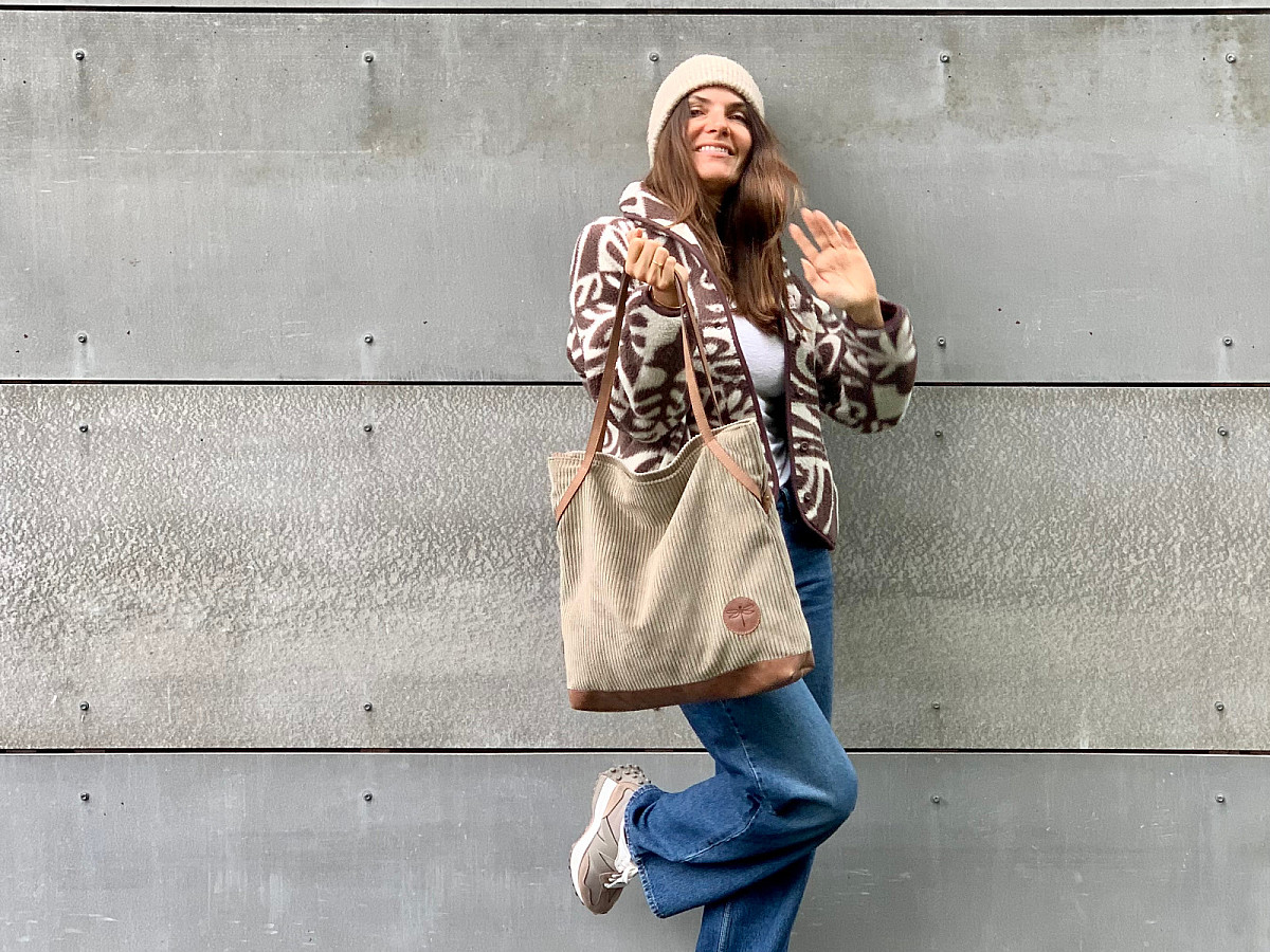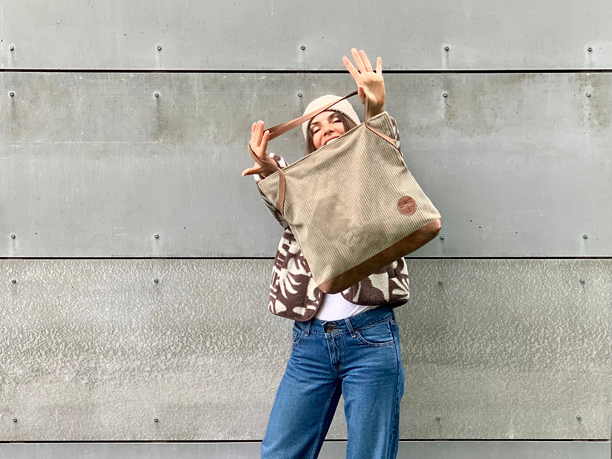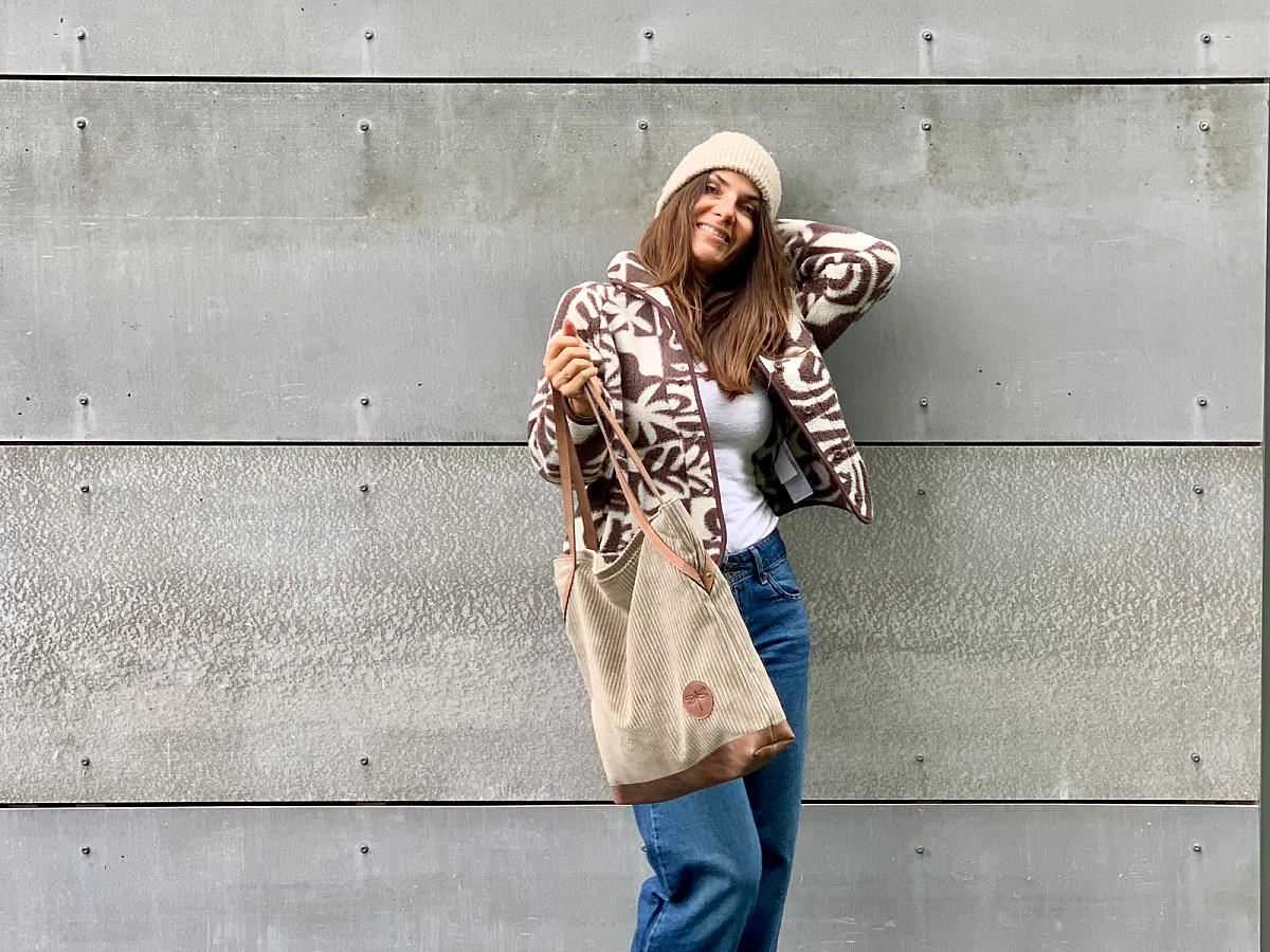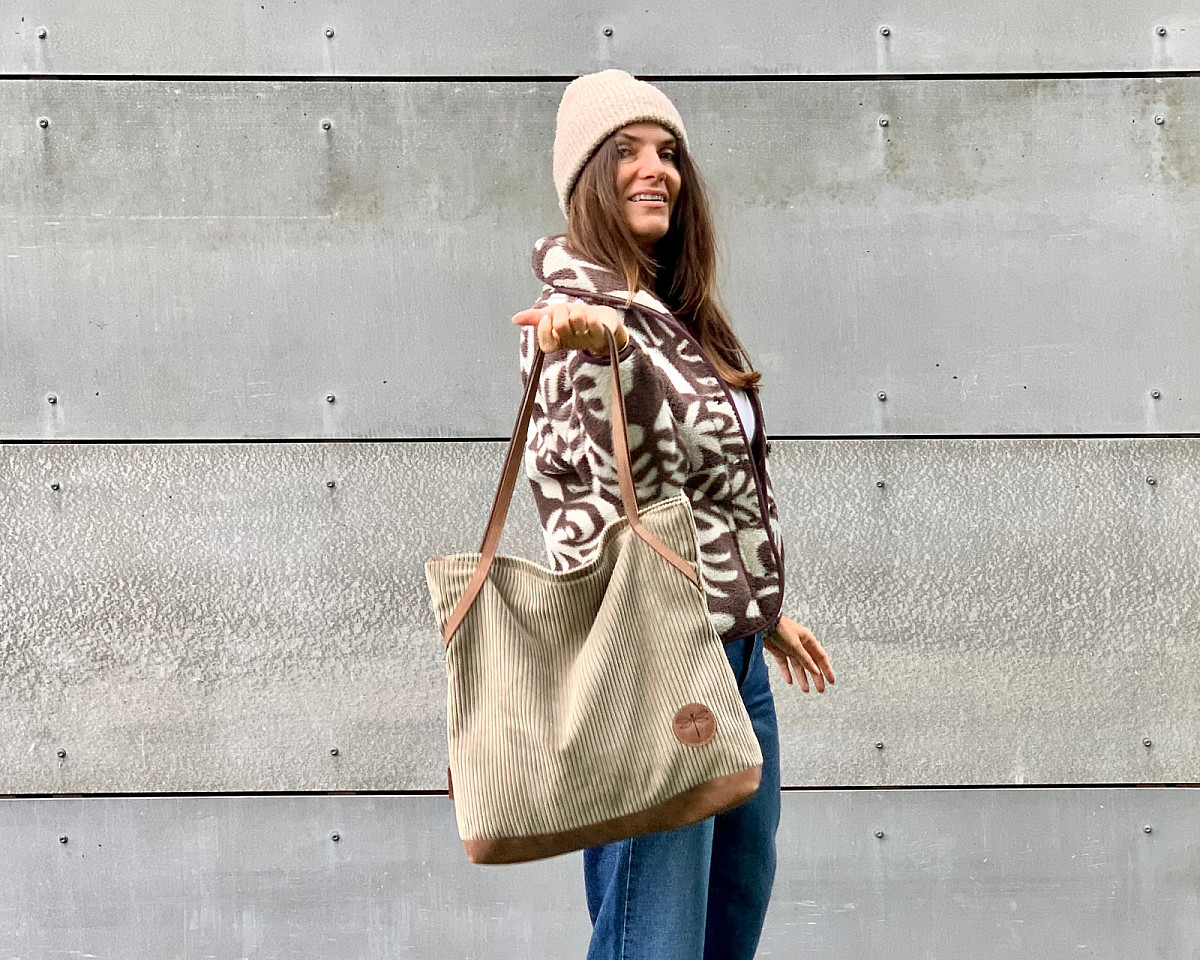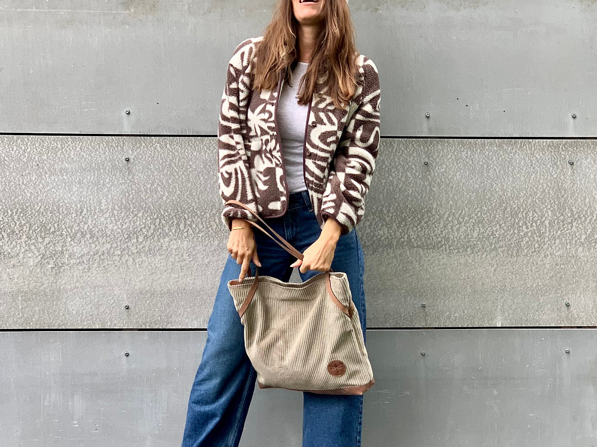 Látka RIB v béžovošedé barvě v kombinaci s hnědou kůží, je příjemná kombinace.