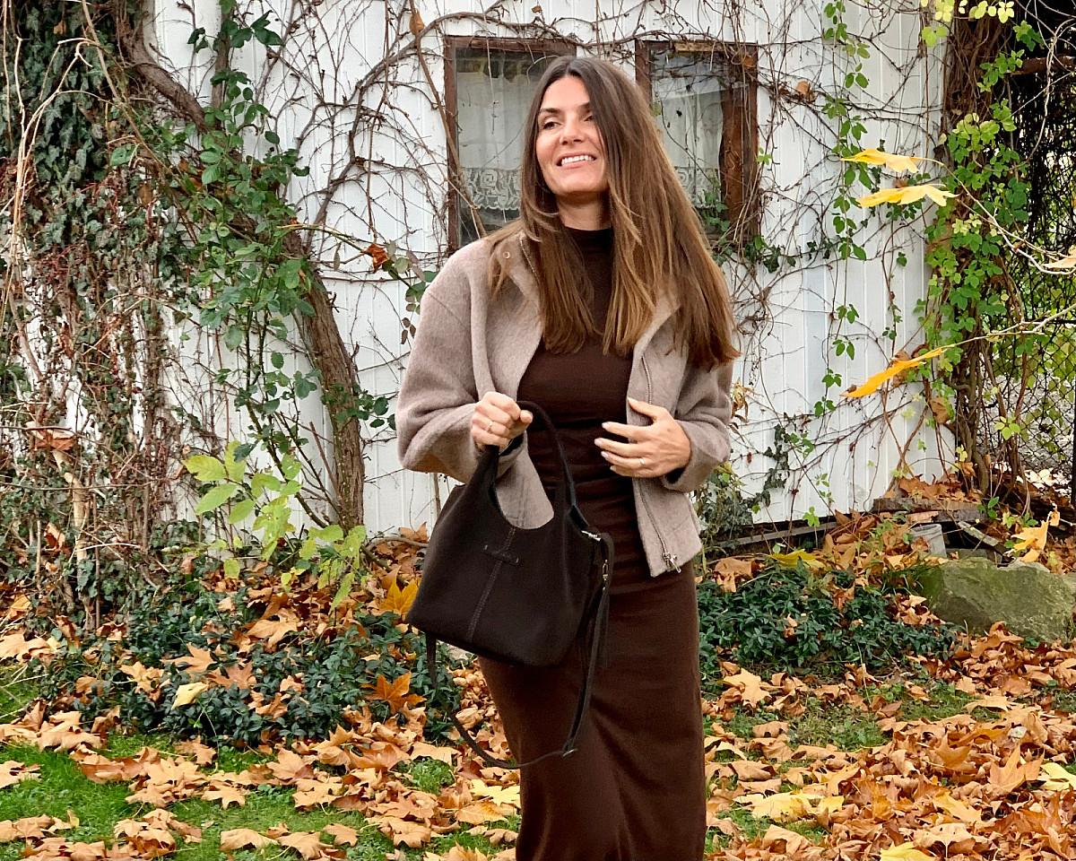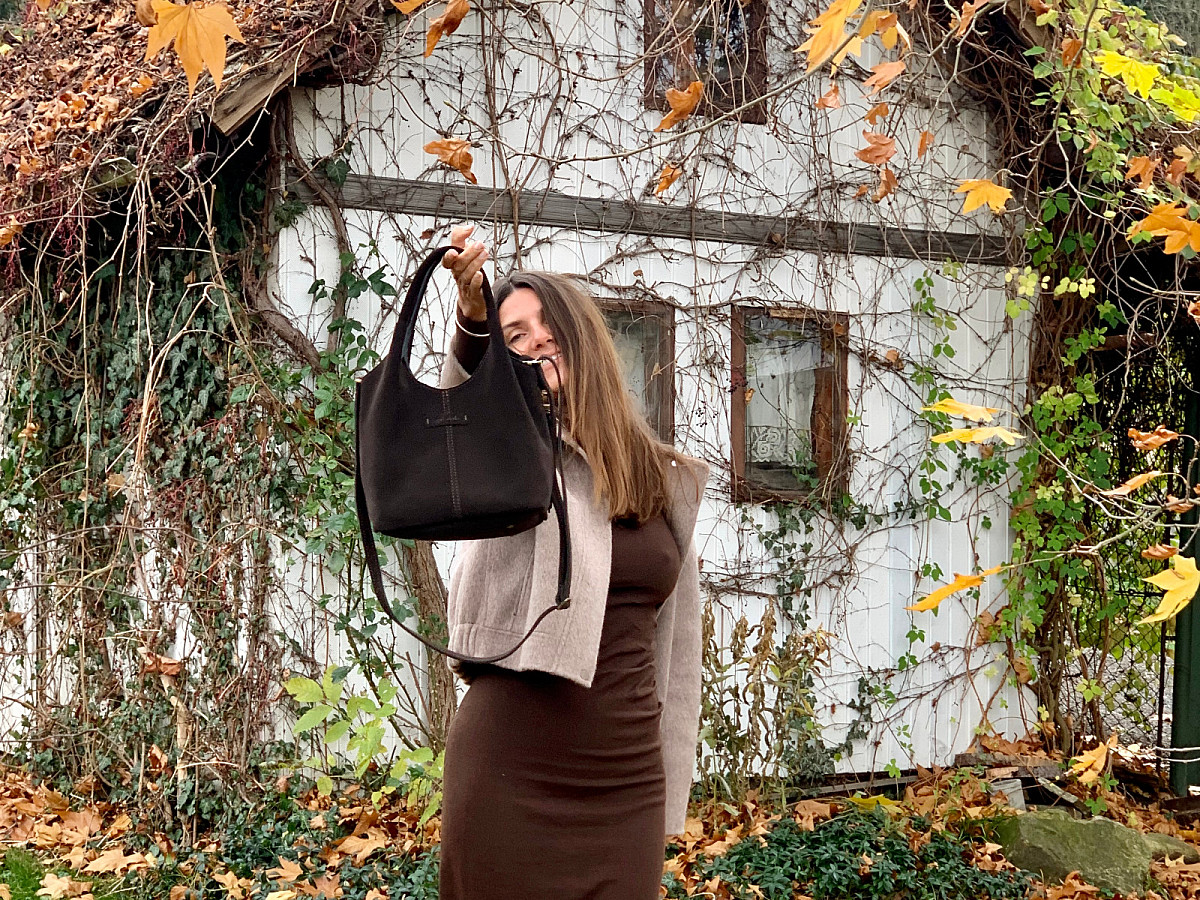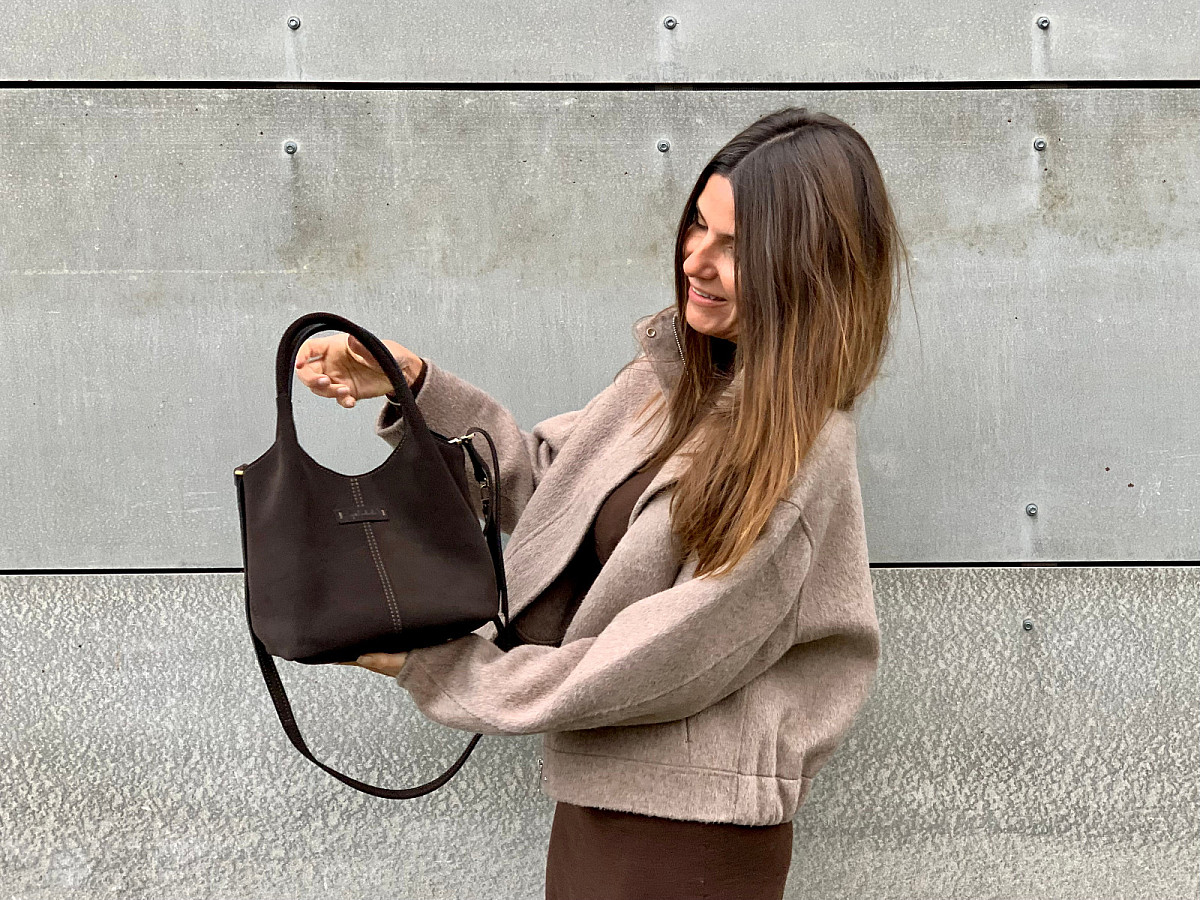 Velurová kůže v odstínu tmavě hnědé, to je CHLOEdark.