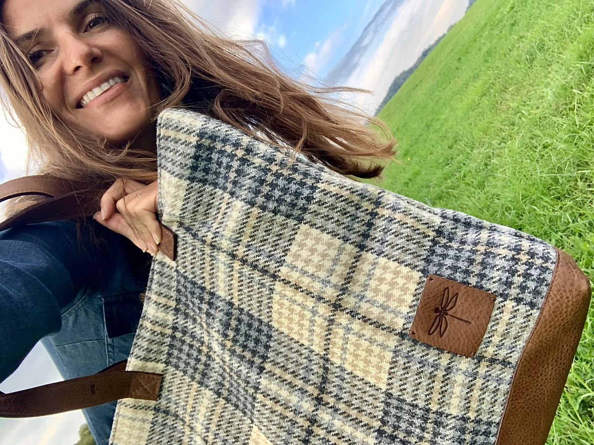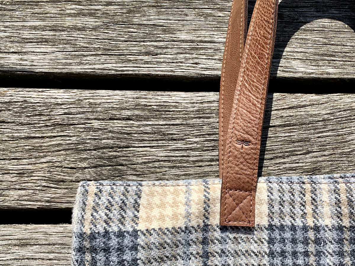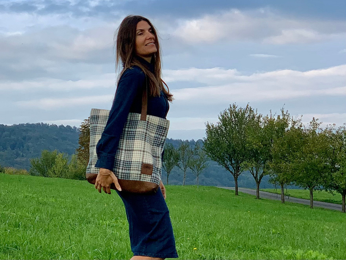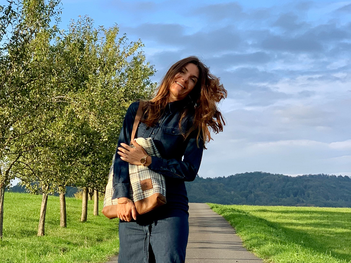 Kabelka LUNA je ušita z italské hověží kůže, v kombinaci s látkou, která svým vzorem připomíná manšestr.