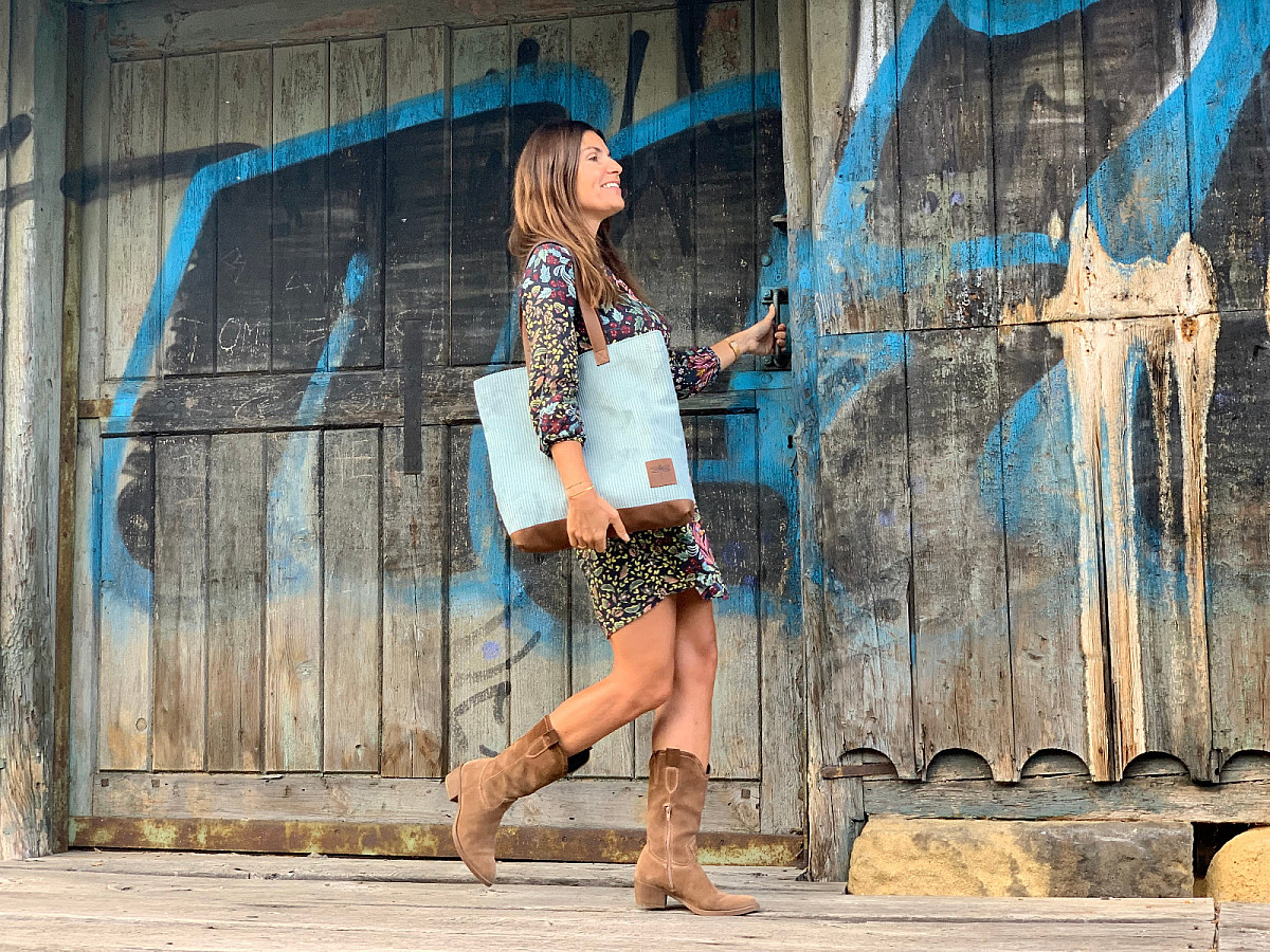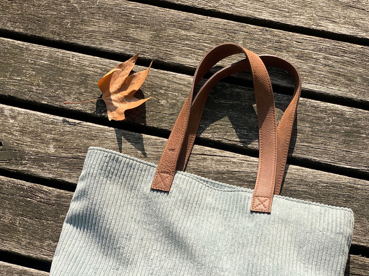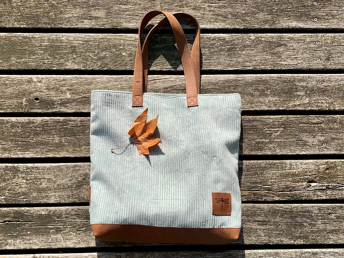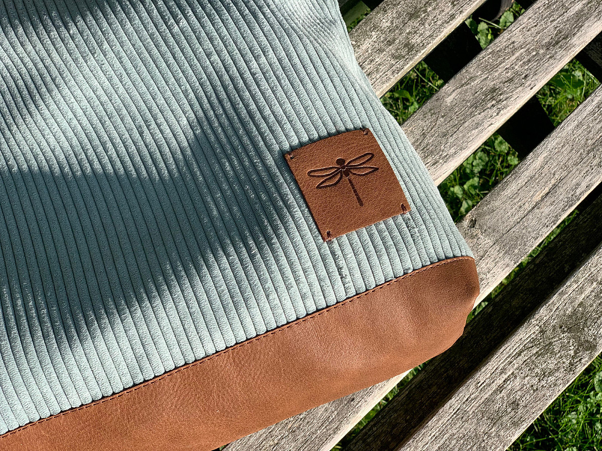 Kabelka LUNA je ušita z italské hověží kůže, v kombinaci s látkou, která svým vzorem připomíná manšestr.