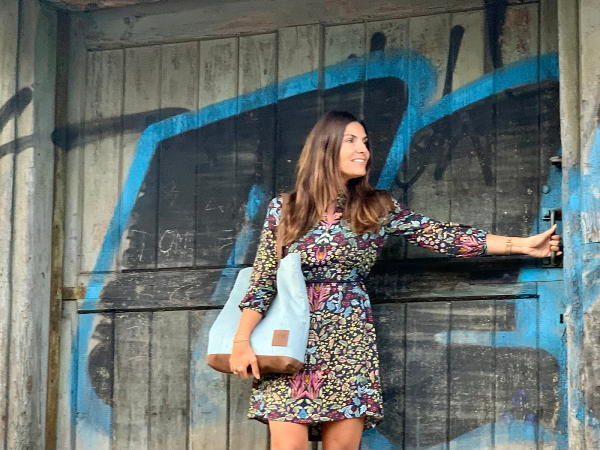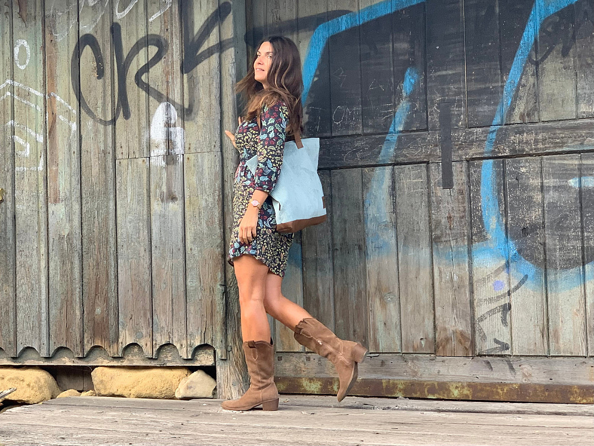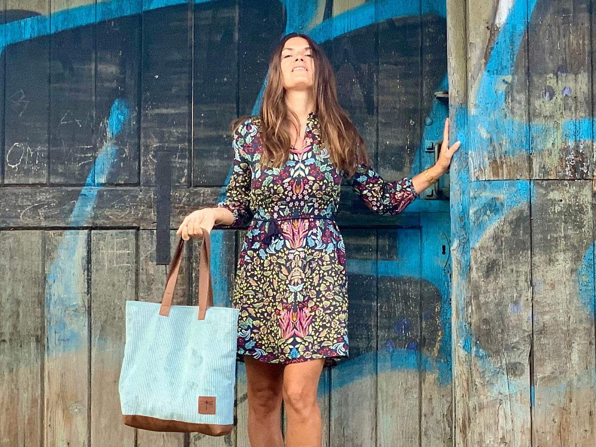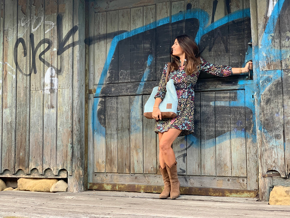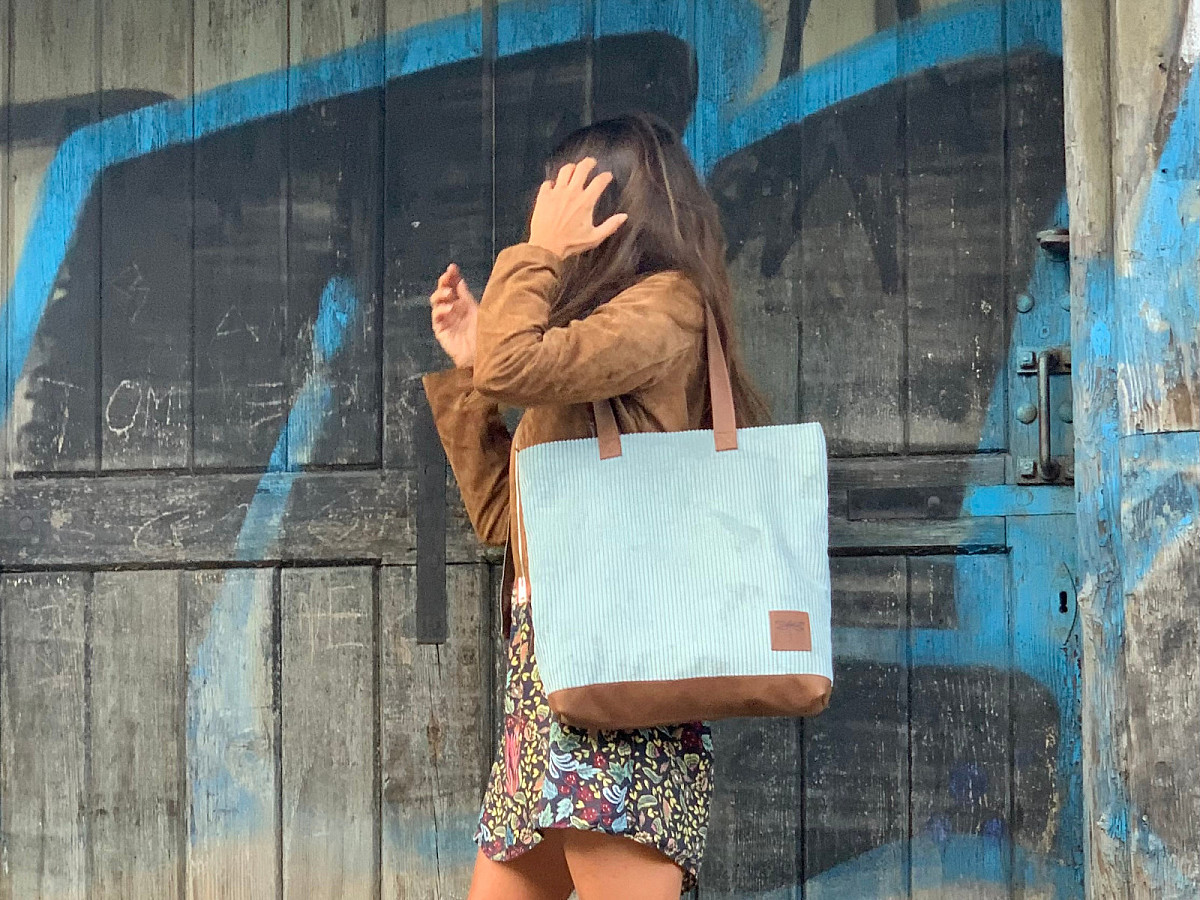 Kabelka LUNA je ušita z italské hověží kůže, v kombinaci s látkou, která svým vzorem připomíná manšestr.