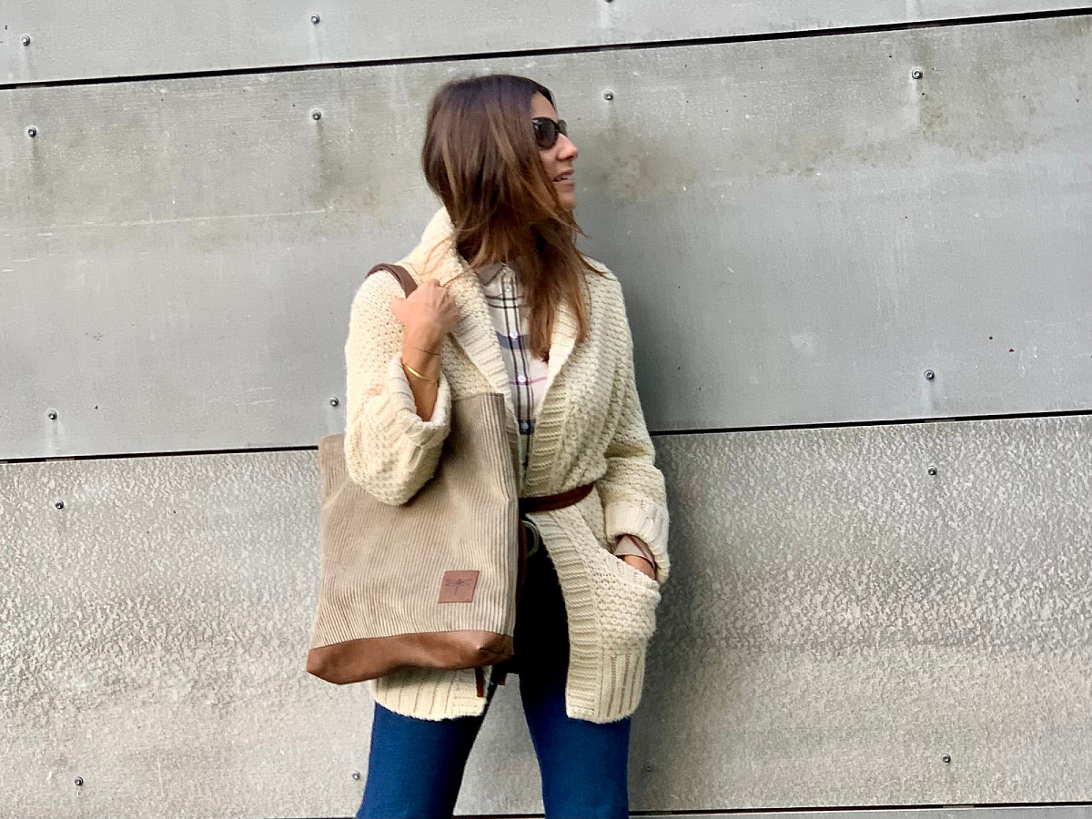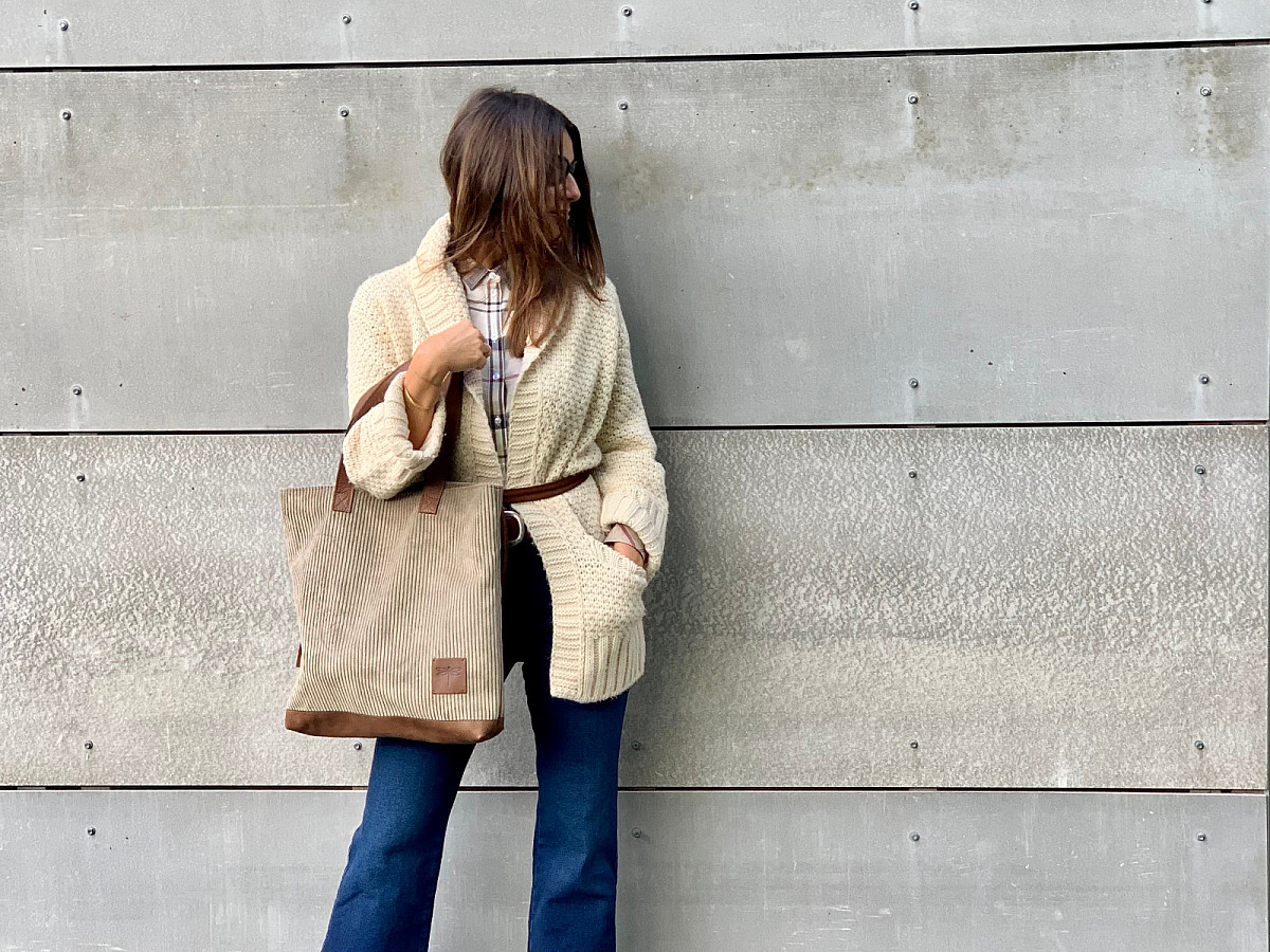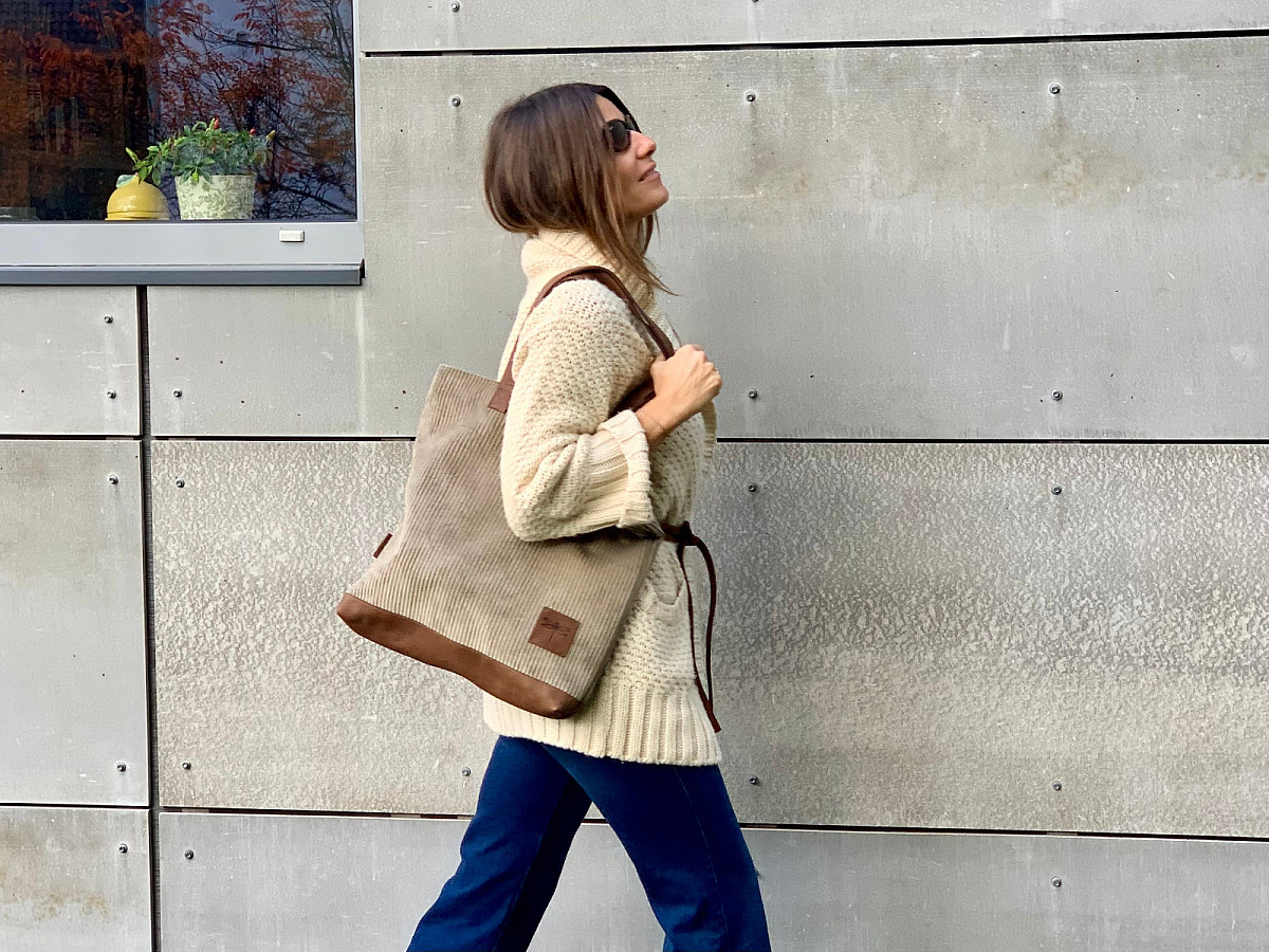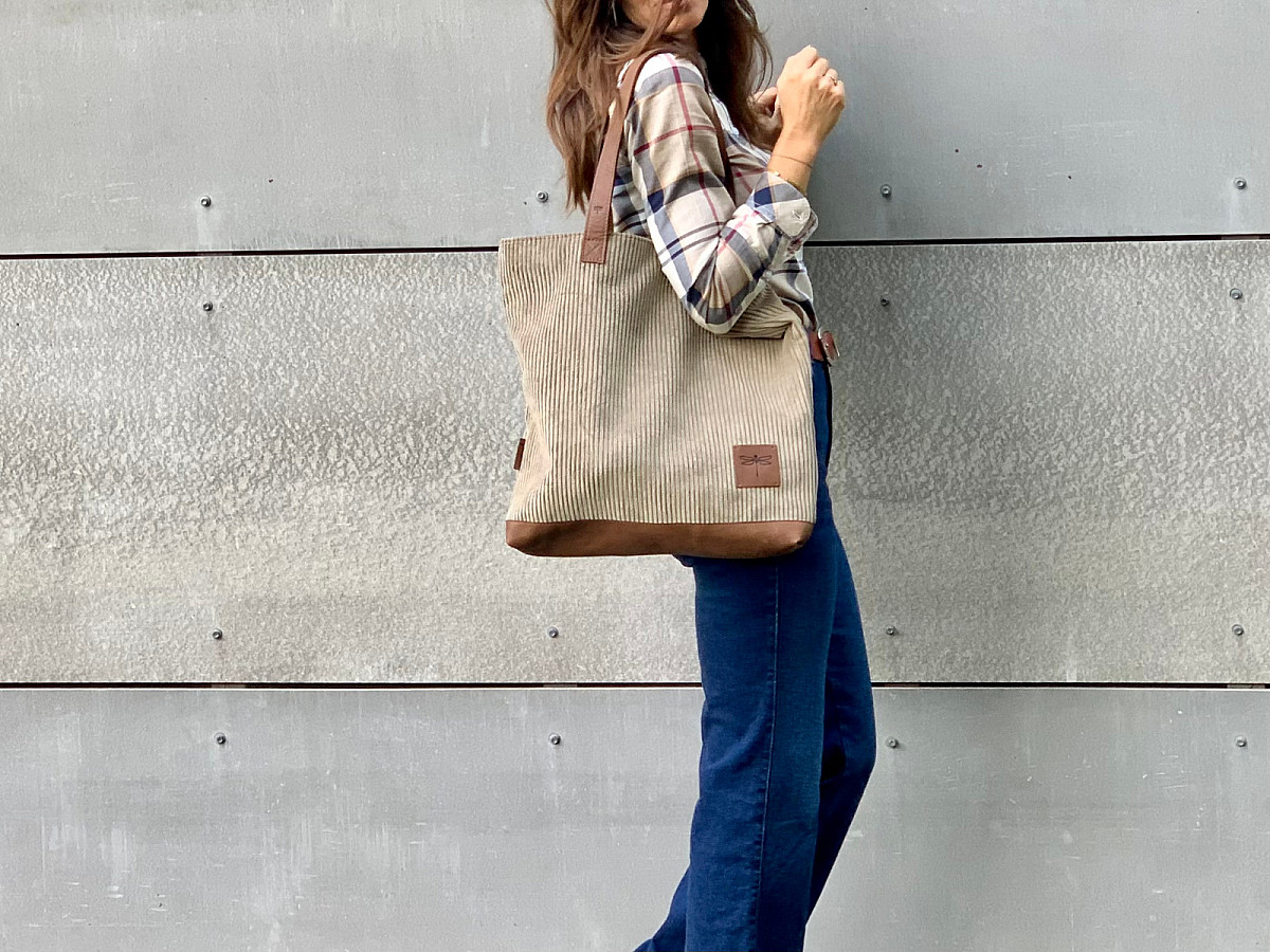 Kabelka VERA je ušita z italské hověží kůže, v kombinaci s látkou RIB, která svým vzorem připomíná manšestr.