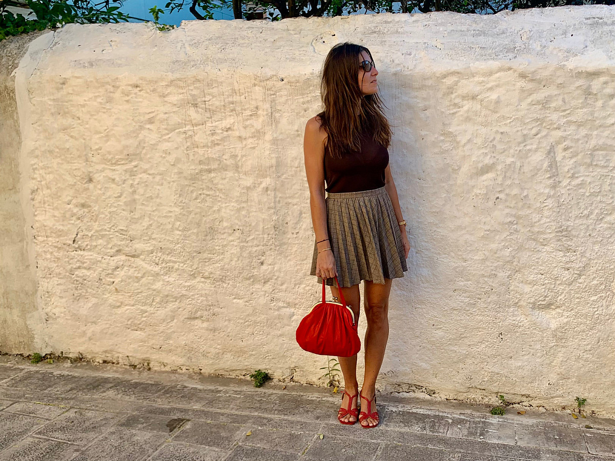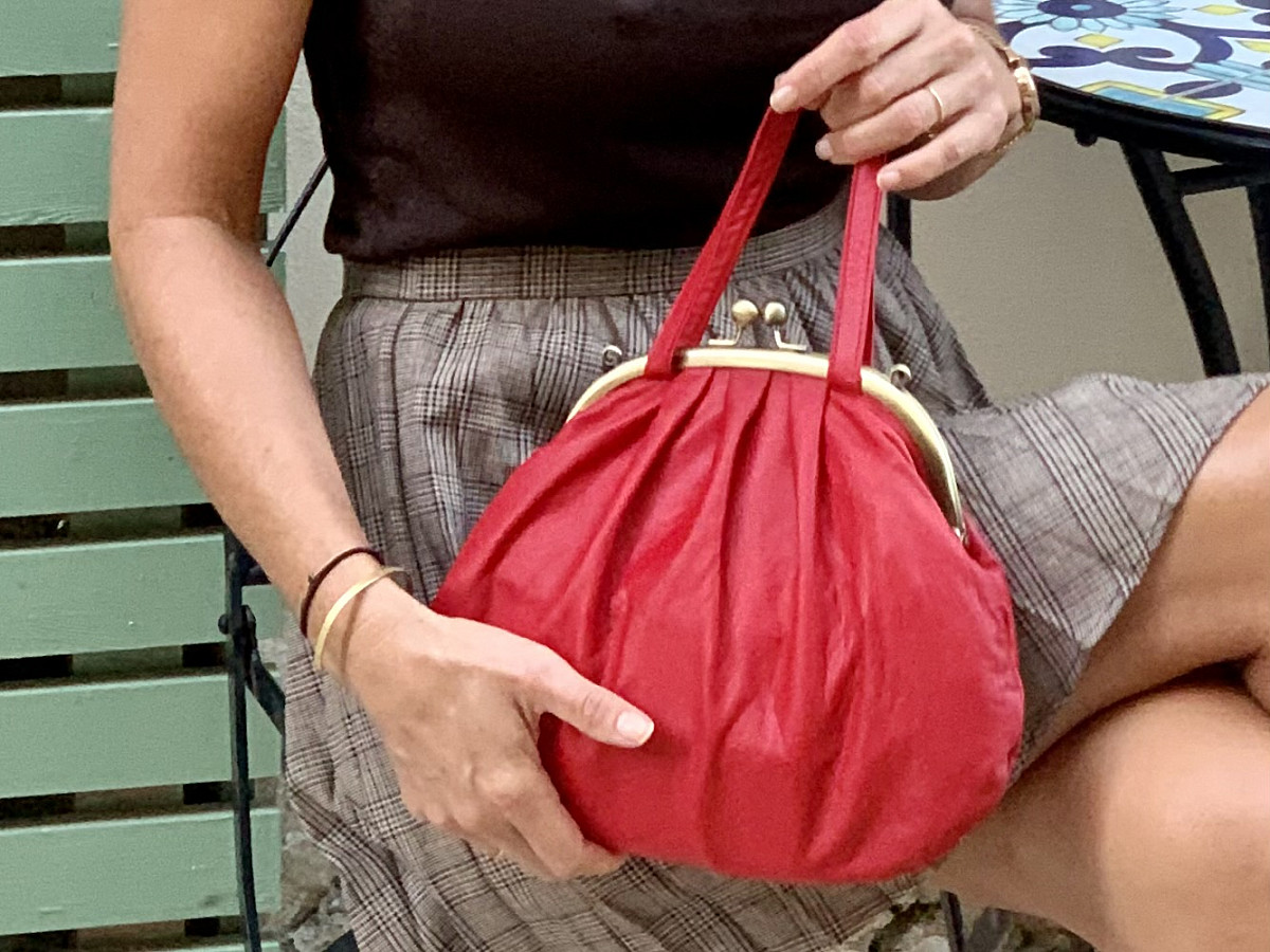 Lze ji nosit také na 110 cm dlouhém staromosazném řetízku, který je součástí kabelky. Řetízek je zakončen karabinkami.